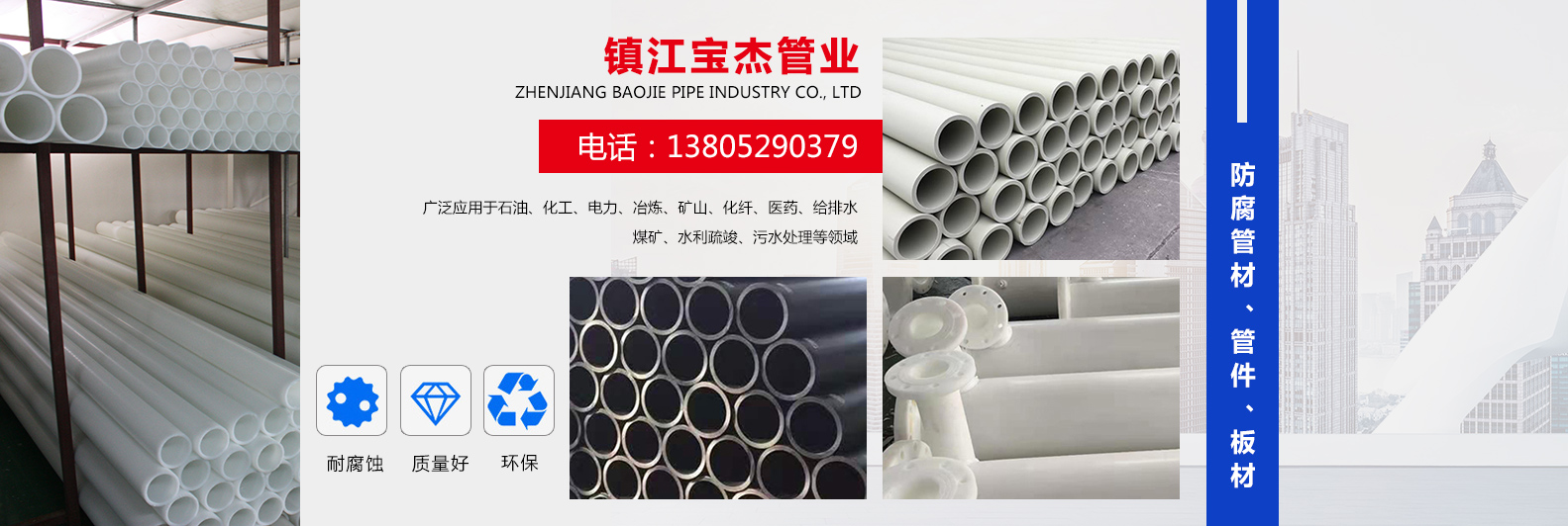 鎮(zhèn)江寶杰管業(yè)有限公司是生產(chǎn)防腐管材、管件、板材的專業(yè)化企業(yè)。